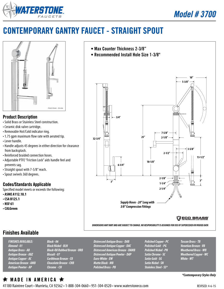 ,3700-CH,3700-SC,3700-AB,3700-ABZ,3700-ORB,3700-TB,3700-AC,3700-BLN,3700-DAC,3700-DAB,3700-AMB,3700-DAMB,3700-CB,3700-PC,3700-AP,3700-DAP,3700-CHB,3700-MB,3700-PN,3700-SN,3700-PB,3700-SS,3700-PG,3700-SG,3700-SB-MB,3700-SB,3700-UPB,3700-CLZ-MB,3700-CLZ,3700-MB-PN,3700-MB-CLZ,3700-MB-SN,3700-MW,3700-MB-SB,3700-MAC,3700-MB-CH,3700-MAB,3700-MB-SS,3700-MAP,3700-CD,3700-GR,3700-CD-MB,3700-MB-CD|,Polished Chrome,Satin Chrome,Antique Brass,Antique Bronze,Oil Rubbed Bronze,Tuscan Brass,Antique Copper,Black Nickel,Distressed Antique Copper,Distressed Antique Brass,American Bronze,Distressed American Bronze,Caribbean Bronze,Polished Copper,Antique Pewter,Distressed Antique Pewter,Chocolate Bronze,Matte Black,Polished Nickel,Satin Nickel,Polished Brass,Stainless Steel,Polished Gold,Satin Gold,Satin Brass & Matte Black,Satin Brass,Unlacquered Polished Brass,Classic Bronze & Matte Black,Classic Bronze,Matte Black & Polished Nickel,Matte Black & Classic Bronze,Matte Black & Satin Nickel,Matte White,Matte Black & Satin Brass,Matte Antique Copper,Matte Black & Chrome,Matte Antique Brass,Matte Black & Stainless Steel,Matte Antique Pewter,Chardonnay,Graphite,Chardonnay & Matte Black,Matte Black & Chardonnay|,6257.00,6569.00,8559.00,8559.00,8559.00,8559.00,8559.00,6569.00,8559.00,8559.00,8559.00,8559.00,8559.00,8559.00,8559.00,8559.00,6569.00,6569.00,6569.00,6569.00,6569.00,8792.00,11126.70,11126.70,7225.90,6569.00,6569.00,7225.90,6569.00,7225.90,7225.90,7225.90,6569.00,7225.90,8559.00,7225.90,8559.00,9671.20,8559.00,6569.00,6569.00,7225.90,7225.90|,4692.75,4926.75,6419.25,6419.25,6419.25,6419.25,6419.25,4926.75,6419.25,6419.25,6419.25,6419.25,6419.25,6419.25,6419.25,6419.25,4926.75,4926.75,4926.75,4926.75,4926.75,6594.00,8345.03,8345.03,5419.43,4926.75,4926.75,5419.43,4926.75,5419.43,5419.43,5419.43,4926.75,5419.43,6419.25,5419.43,6419.25,7253.40,6419.25,4926.75,4926.75,5419.43,5419.43|,0,0,0,0,0,0,0,0,0,0,0,0,0,0,0,0,0,0,0,0,0,0,0,0,0,0,0,0,0,0,0,0|,28996393631849,28996393664617,28996393697385,28996393730153,28996393762921,28996393795689,28996393861225,28996393893993,28996393926761,28996393959529,28996393992297,28996394025065,28996394057833,28996394090601,28996394123369,28996394156137,28996394254441,28996394287209,28996394319977,28996394352745,28996394385513,28996394418281,28996394451049,28996394483817,41001693118655,28996394516585,28996394582121,41001693216959,28996394614889,41001693348031,41001693282495,41001693249727,40782876016831,41001693184191,40782876049599,41001693315263,40782876115135,41001693151423,40782876082367,42482216108223,42237762928831,42482216140991,42482216075455|,42,42,42,42,42,42,42,42,42,42,42,42,42,42,42,42,42,42,42,42,42,42,42,42,42,42,42,42,42,42,42,42,42,42,42,42,42,42,42,42,42,42,42|,3700-CH,3700-SC,3700-AB,3700-ABZ,3700-ORB,3700-TB,3700-AC,3700-BLN,3700-DAC,3700-DAB,3700-AMB,3700-DAMB,3700-CB,3700-PC,3700-AP,3700-DAP,3700-CHB,3700-MB,3700-PN,3700-SN,3700-PB,3700-SS,3700-PG,3700-SG,3700-SB-MB,3700-SB,3700-UPB,3700-CLZ-MB,3700-CLZ,3700-MB-PN,3700-MB-CLZ,3700-MB-SN,3700-MW,3700-MB-SB,3700-MAC,3700-MB-CH,3700-MAB,3700-MB-SS,3700-MAP,3700-CD,3700-GR,3700-CD-MB,3700-MB-CD