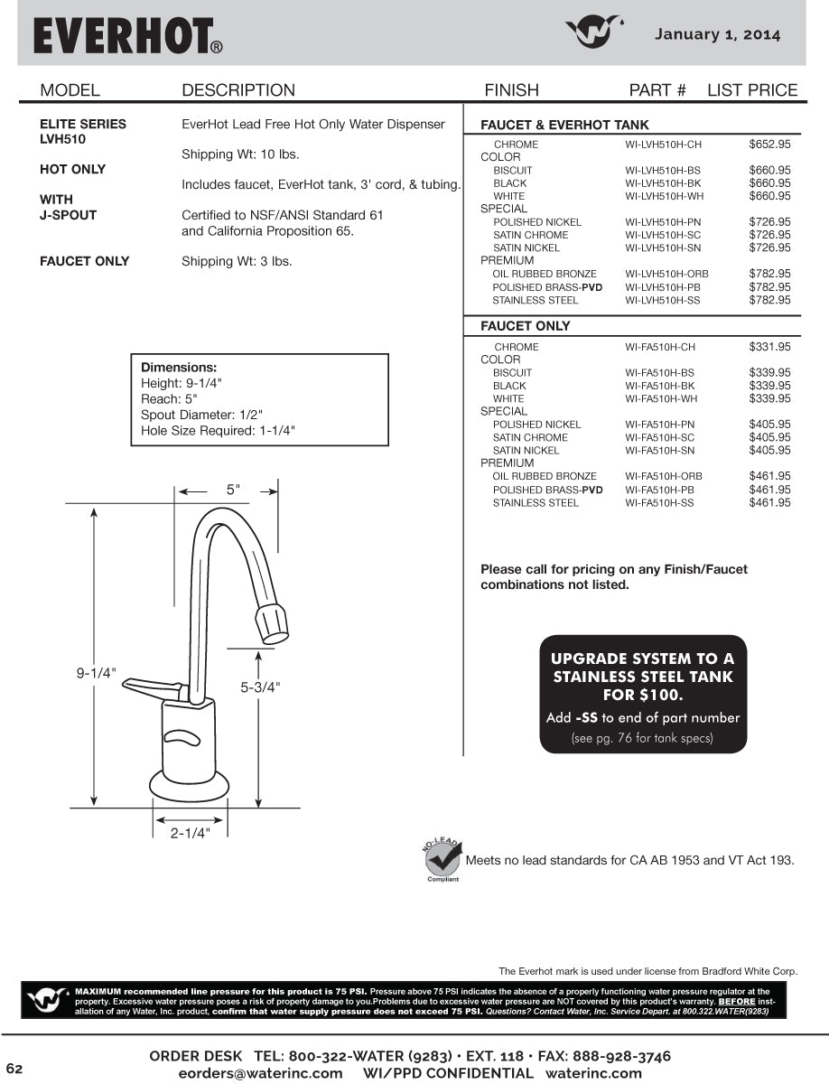 Water Inc WI-FA510C Elite With J-Spout Lead Free Faucet For Filter