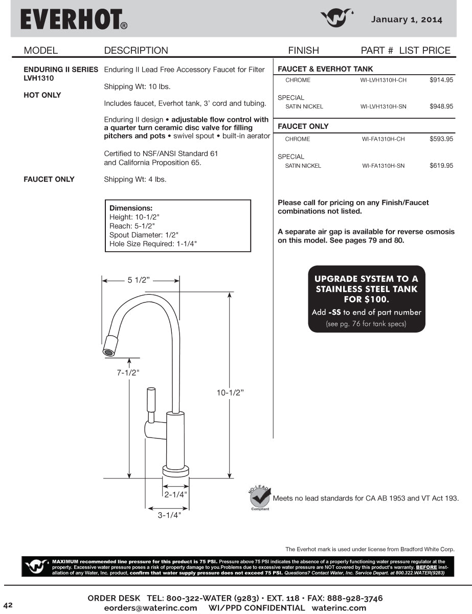Water Inc WI-FA1310H Enduring II Lead Free Hot Water Filtration Faucet Only