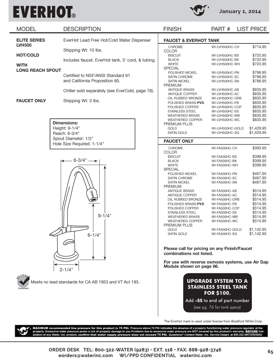 Water Inc WI-LVH500HC EverHot Lead Free Hot/Cold Water Dispenser