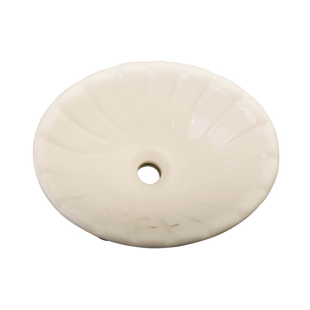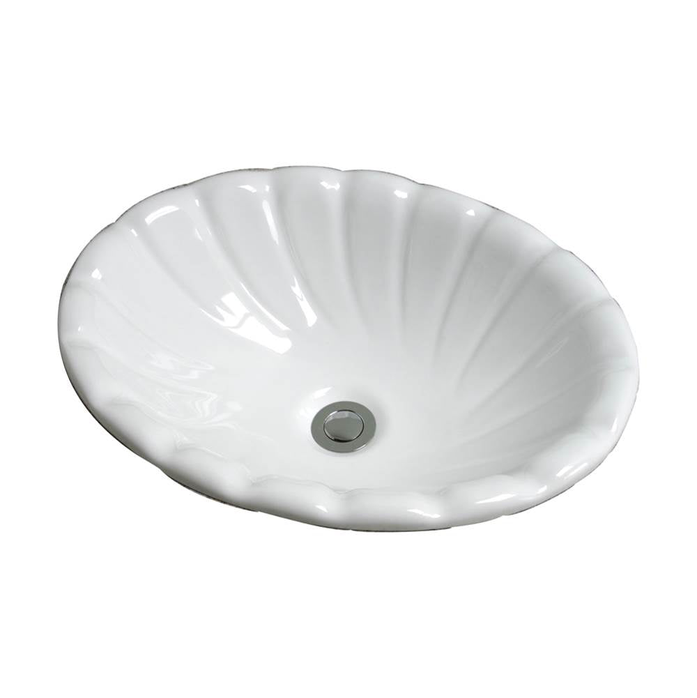 This fine vitreous china drop-in has a rolled rim sculpted with scallops which flow into delicate flutes partially down the inside of the basin.