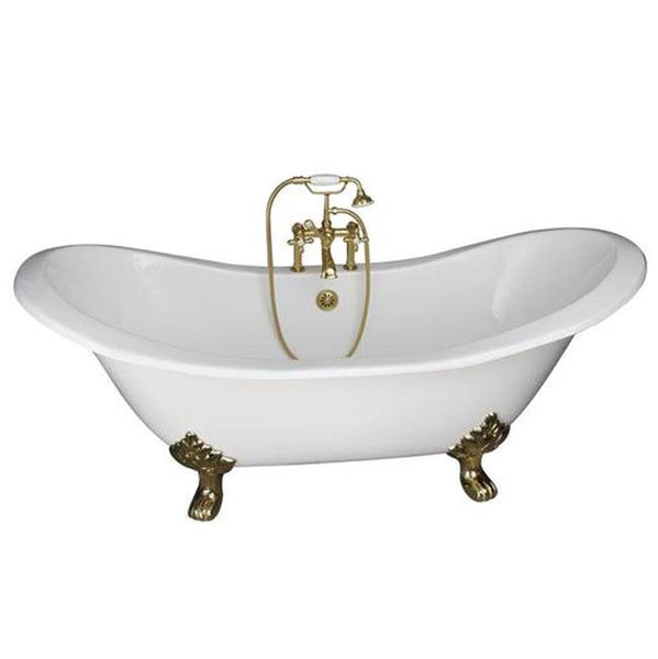 Barclay TKCTDSH-PB2 Tub Kit 71 Cast Iron Double Slipper Filler Supplies Drain - Polished Brass