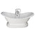 Luxuriate in this spacious cast iron double slipper tub on a decorative cast iron base. Elegant tub filler features elephant spout and hand shower. All necessary accessories are provided to install your tub to ensure a perfect bathing experience.