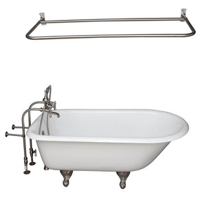 Barclay TKCTRN54-SN14 Tub Kit 55 Cast Iron Roll Top Filler Shower Rod Supplies Drain - Brushed Nickel