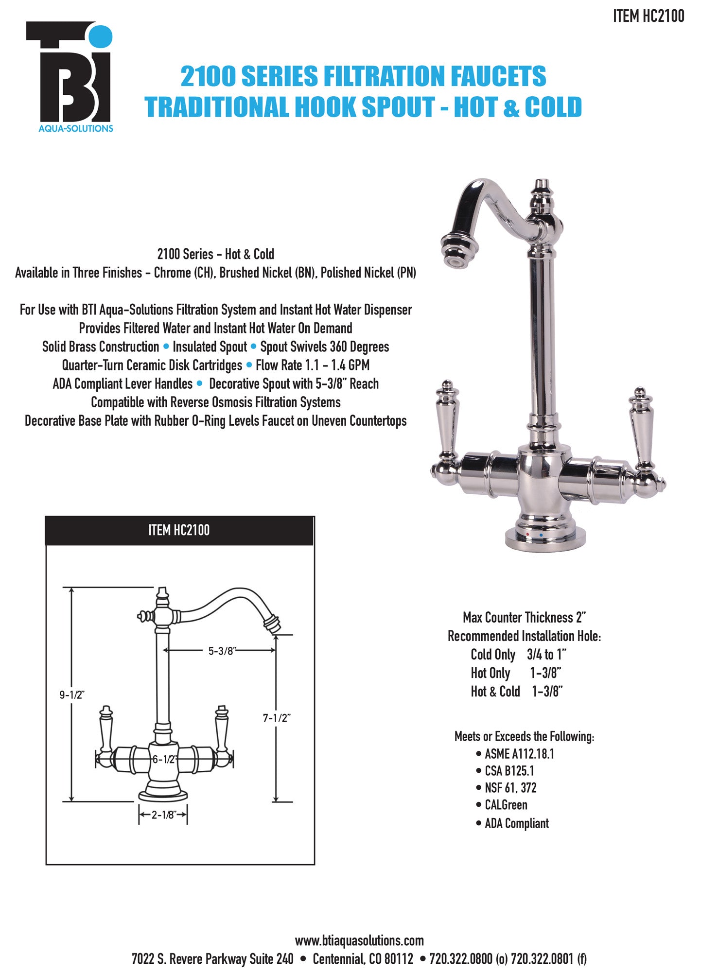 BTI HC2100 Traditional Hook Spout Hot/Cold Filtration Faucet