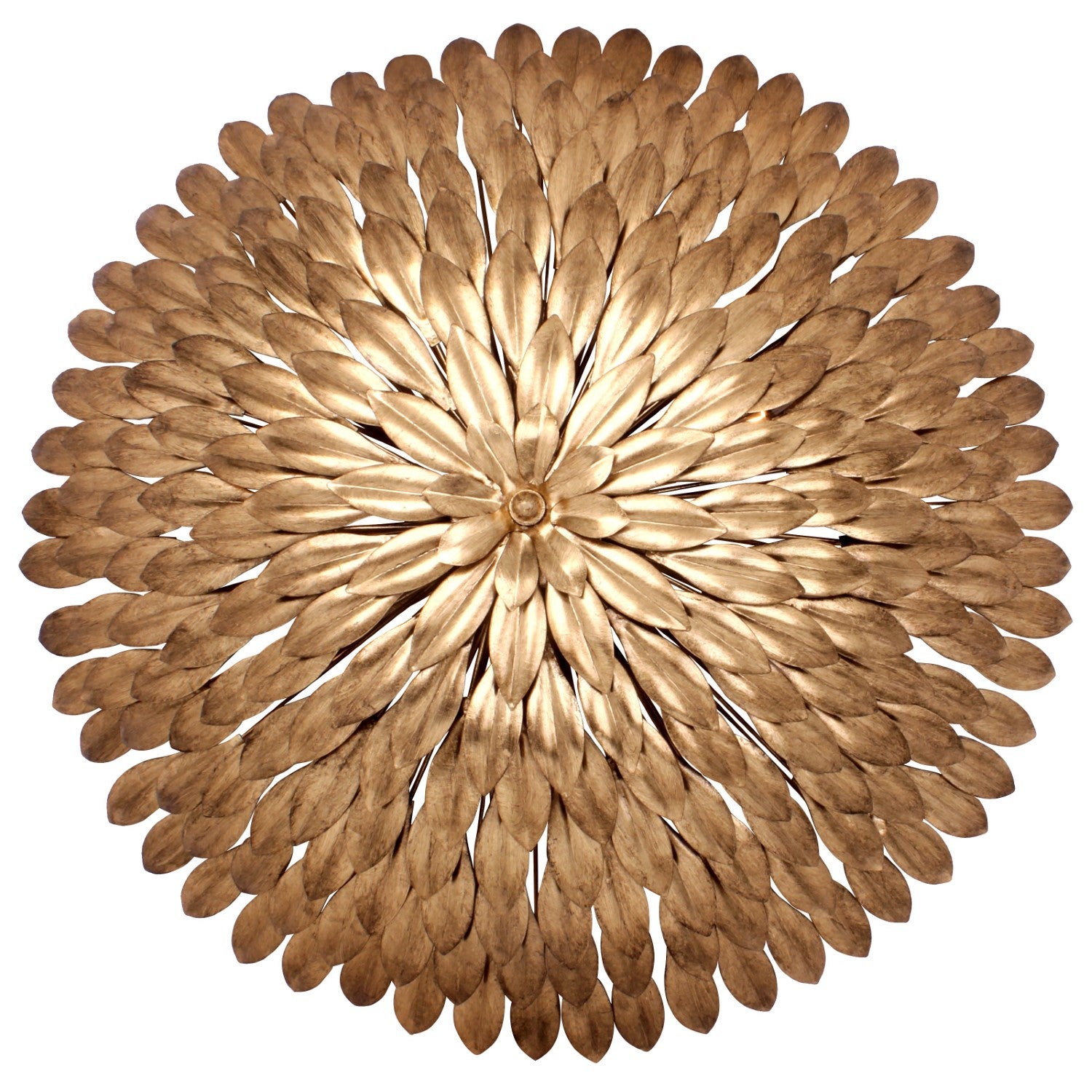Layers of individual wrought iron leaves deliver a stunning, unique, and functional light. The tailored elegance of the shimmering metallic florals is perfect for a transitional home though versatile enough to be incorporated into any modern design. While ideal for a bedroom, living area, or kitchen, it can be used anywhere you want to add a bit of glam.