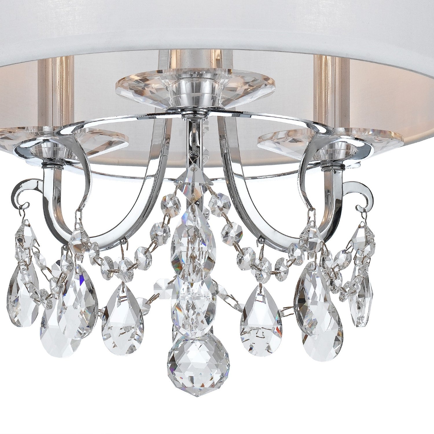 Classic like a timeless piece of jewelry, the Othello dazzles with traditional glamour. This elegant fixture is decorated with swags of faceted cut crystal jewels optimally cut for awe-inspiring sparkle and surrounded by a white silk drum shade to create a diffused lighting experience. These fixtures add the perfect bit of glam to any room and are sure to catch the eye and the light.