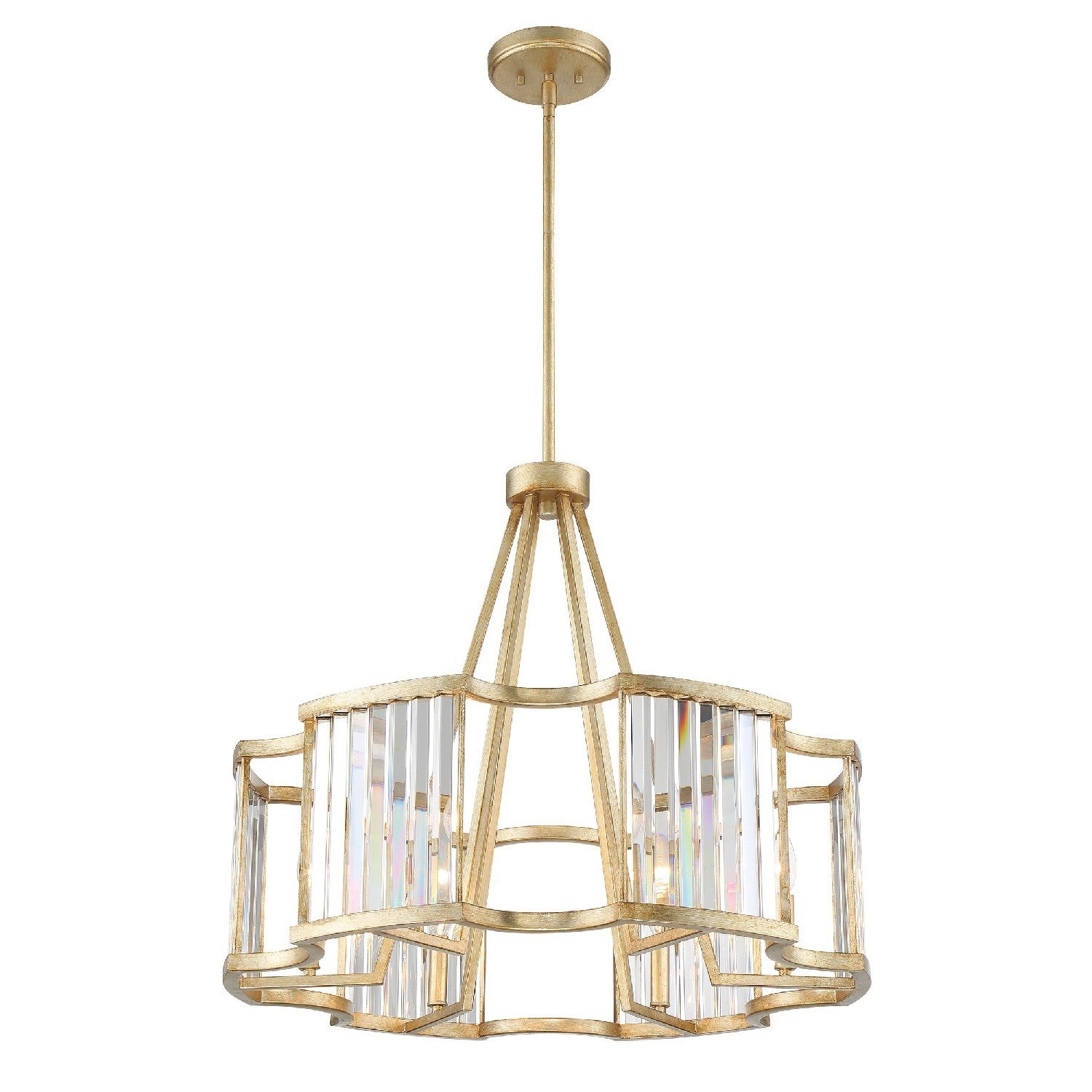 Warmth emanates from the cut crystal elements framing the curved distressed metal cage. Both timeless and transitional, the minimalist design makes the Darcy ideal for any space in the home.