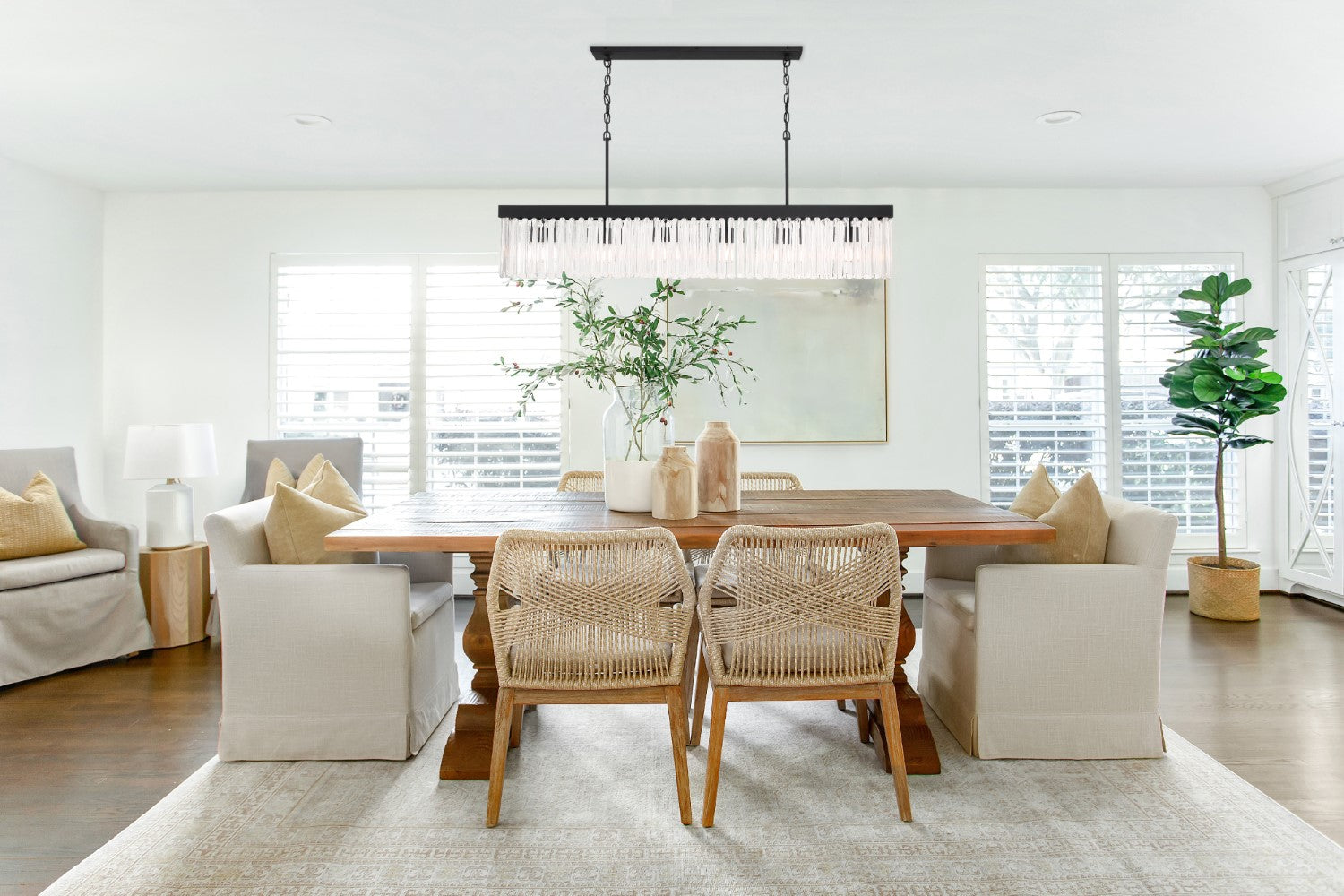 The elongated crystal prisms provide a modern look.