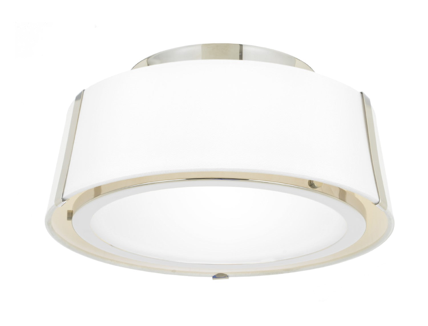 The Fulton has a timeless style that adds uncomplicated beauty to any space. The double white silk shade, with the inside shade trimmed with a sleek metal ring holding the glass diffuser, gives the light a clean, tailored, versatile appeal.