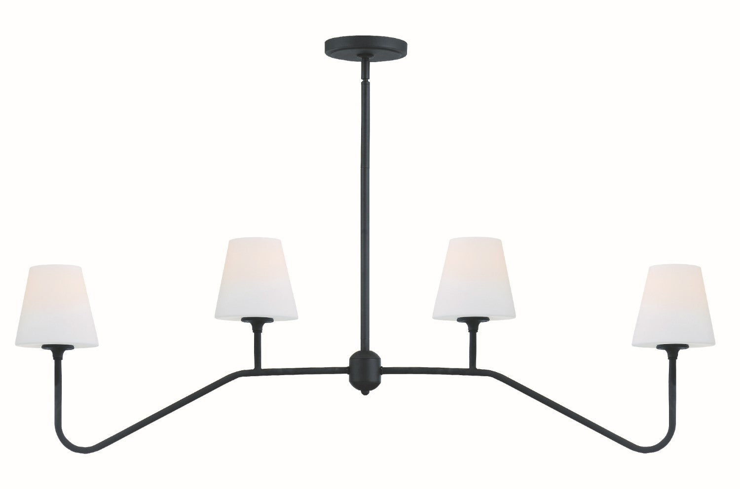Less is more with the sleek minimalist Keenan collection. The fixture combines thin, angular arms with white glass shades for a modern touch, easily incorporated into various rooms and design styles. A cone-shaped white glass shade tops the bulb exuding a soft, ambient glow that is perfect for kitchens, dining rooms, or living room.