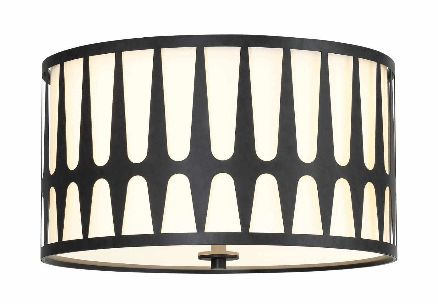 Makes a statement with its graphic metal frame surrounding a white fabric drum shape.