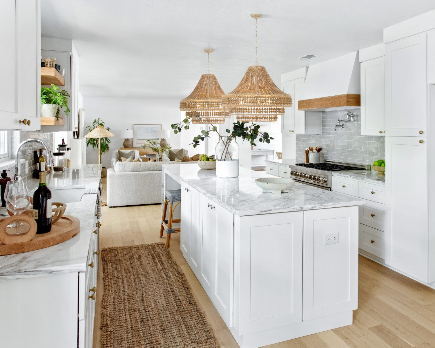 The Silas interlaces natural wood beads with jute rows, bringing an organic element to its environment. A series of beads are strung together, taking on a handmade aesthetic that creates an inviting and casual style to a room.