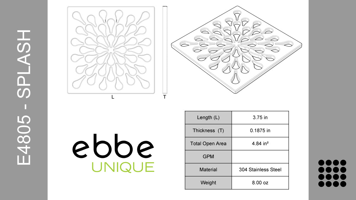 eBBe E4805 Splash 3.75" x 3.75" 304 Stainless Steel Drain