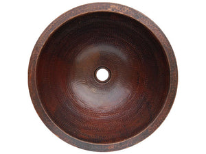 The C009 copper sink by Eden Bath features a unique semi recessed design which means half of the sink is designed to sit below the countertop and the upper half of it above. Its part drop in and part vessel. This gives the effect of a shorter vessel sink with the functionality of a larger under mounted sink. The copper sink is adorned with a unique hammered finish.