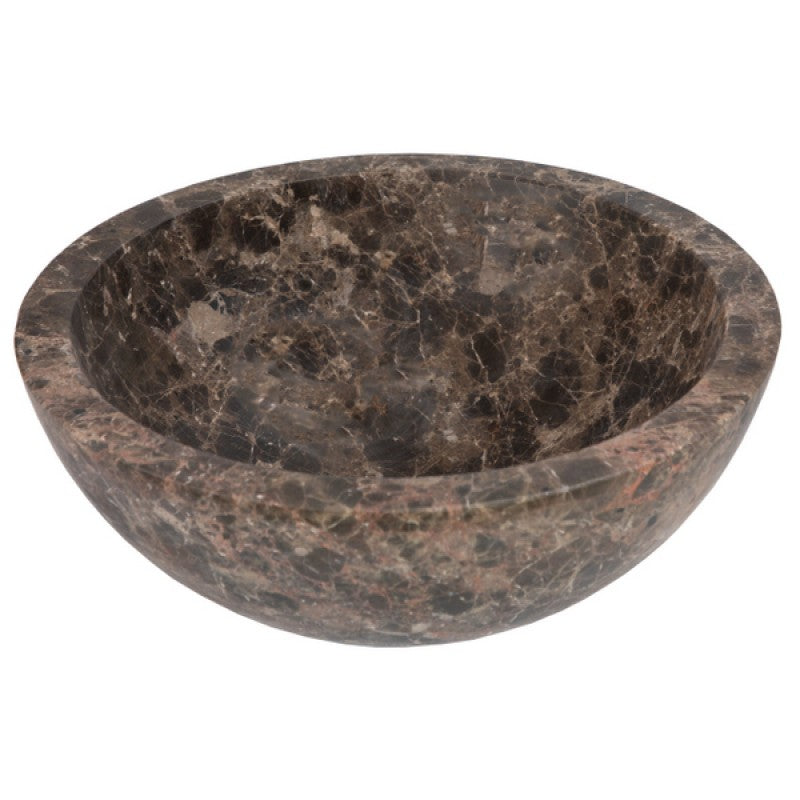This small vessel sink in black basalt makes a big statement its modern design and thick walls give it a bold look while not being overpowering. The honed finish gives the sink a muted aesthetic as compared to a polished sink. The honed finish is instantly brightened when the surface comes in contact with water. This small vessel stone sink is ideal for installations into bathrooms and powder rooms that are short on space but big on ideas. The 14" diameter (with 12” inner diameter) still makes it practical enough to wash your hands in but small enough to accommodate your limited space.