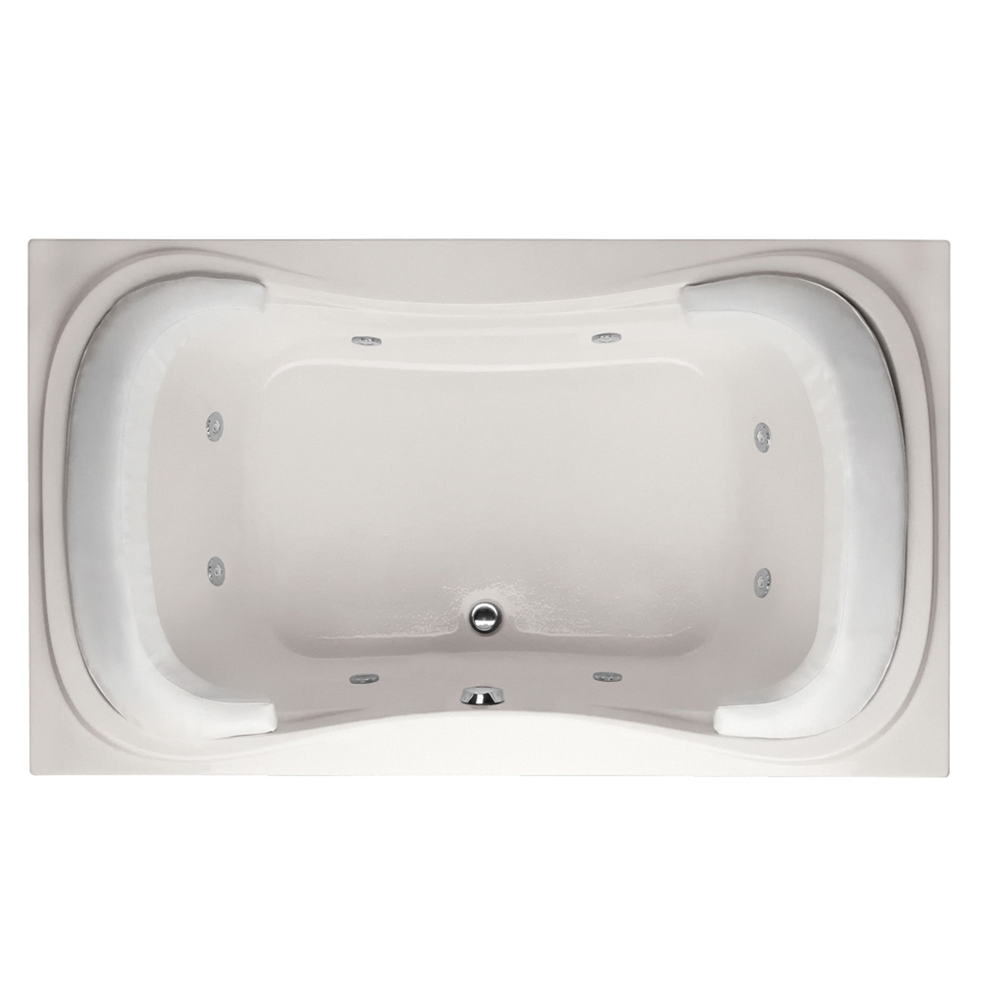 - Rectangular two-person drop-in tub with side center drain