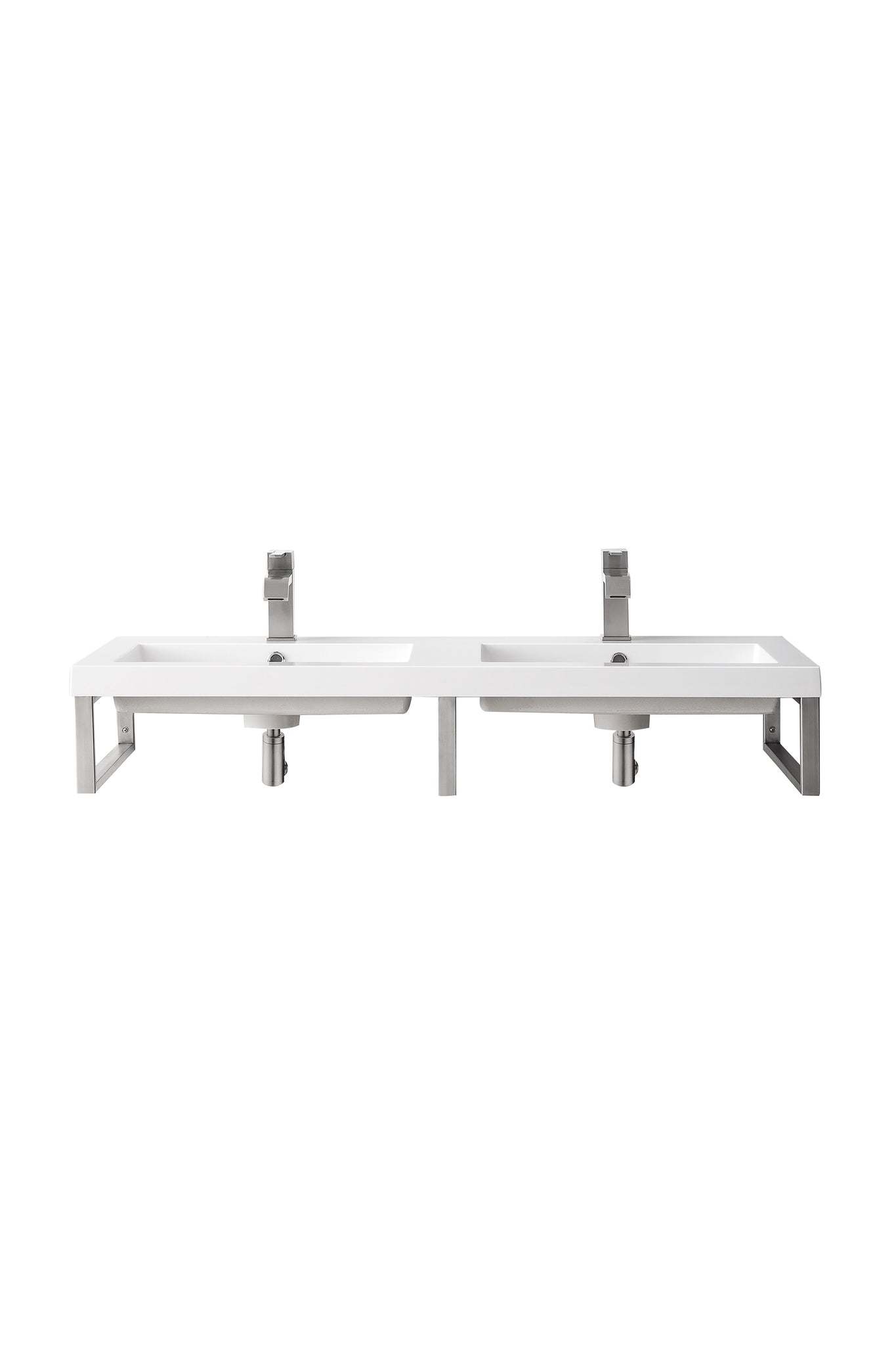 Minimalistic and bold, the design of the Boston floating console by James Martin Vanities will add a sleek look to any bathroom. The Brushed Nickel metal framing creates an open view allowing for the appearance of expanded space. The compelling design of this piece with its substantial frame not only improves stability but also provides a location from which is perfect for hanging towels or washcloths. The space saving design combines the multiple finishes of the metal structure to durable materials and compact dimensions, features found only in the most sophisticated bathroom.