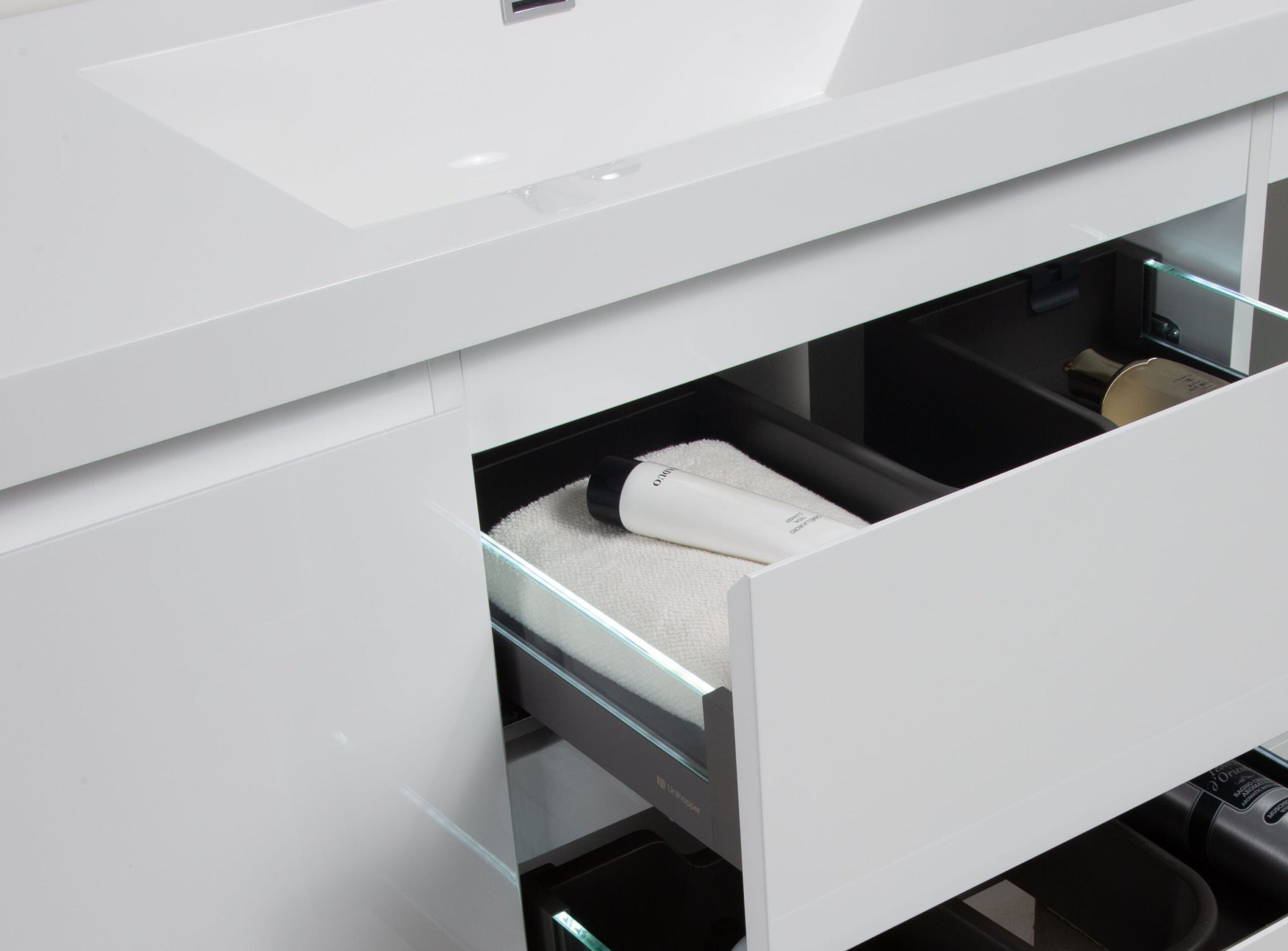 The Aurora collection is crafted from high-quality materials, ensuring its durability and longevity. Overall, the Aurora collection is a fantastic choice for anyone looking to elevate their bathroom decor while also maintaining functionality. Its modern design and illuminated glass drawers will make a statement in any bathroom, and its range of sizes means it can fit into any space. The collection's name serves as a reminder of the beauty and wonder of our natural world and the importance of preserving it, making the Aurora collection not only visually stunning but also meaningful.<
