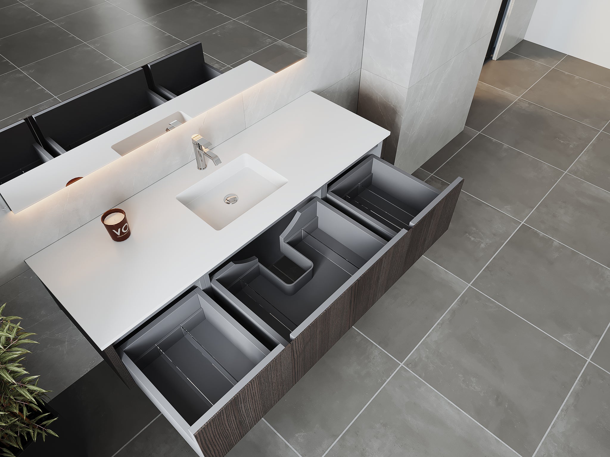 Handcrafted in Italy, The Legno collection brings you a modern look with an elegant touch. This collection is engineered with the highest grade cabinet materials, push-to-open Blum hardware, and wrapped with beautiful wood panels. The adaptive design allows you to combine multiple cabinets to create any size vanity to fit your space. When paired with our countertops, you can create any feel in your bathroom. The VIVA Stone Solid Surface countertops give it a sleek modern look. This premium vanity is a perfect fit for any bathroom and will become the centerpiece of your space.