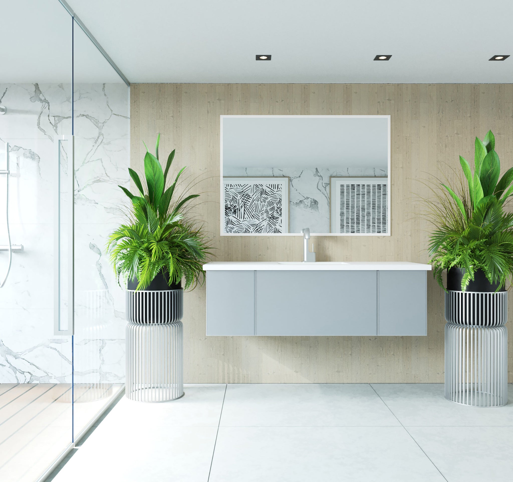 Handcrafted in Italy, The Vitri collection brings you a modern look with an elegant touch. This collection is engineered with the highest grade cabinet materials, push-to-open Blum hardware, and wrapped by beautifully frosted Nano Glass panels. Our Nano Glass Technology makes the glass durable for everyday use and won't leave smudges or fingerprints behind. The Vitri collection's adaptive design allows you to combine multiple cabinets to create any size vanity to fit your space. When paired with our countertops, you can create any feel in your bathroom. The VIVA Stone Solid Surface countertops give it a sleek modern look. This premium vanity is a perfect fit for any bathroom and will become the centerpiece of your space.