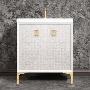 Linkasink VAN30W-015PB Mother Of Pearl With 3 Artisan Glass Prism Hardware 30 Wide Vanity, 30 X 22 X 33.5 (Without Vanity Top)