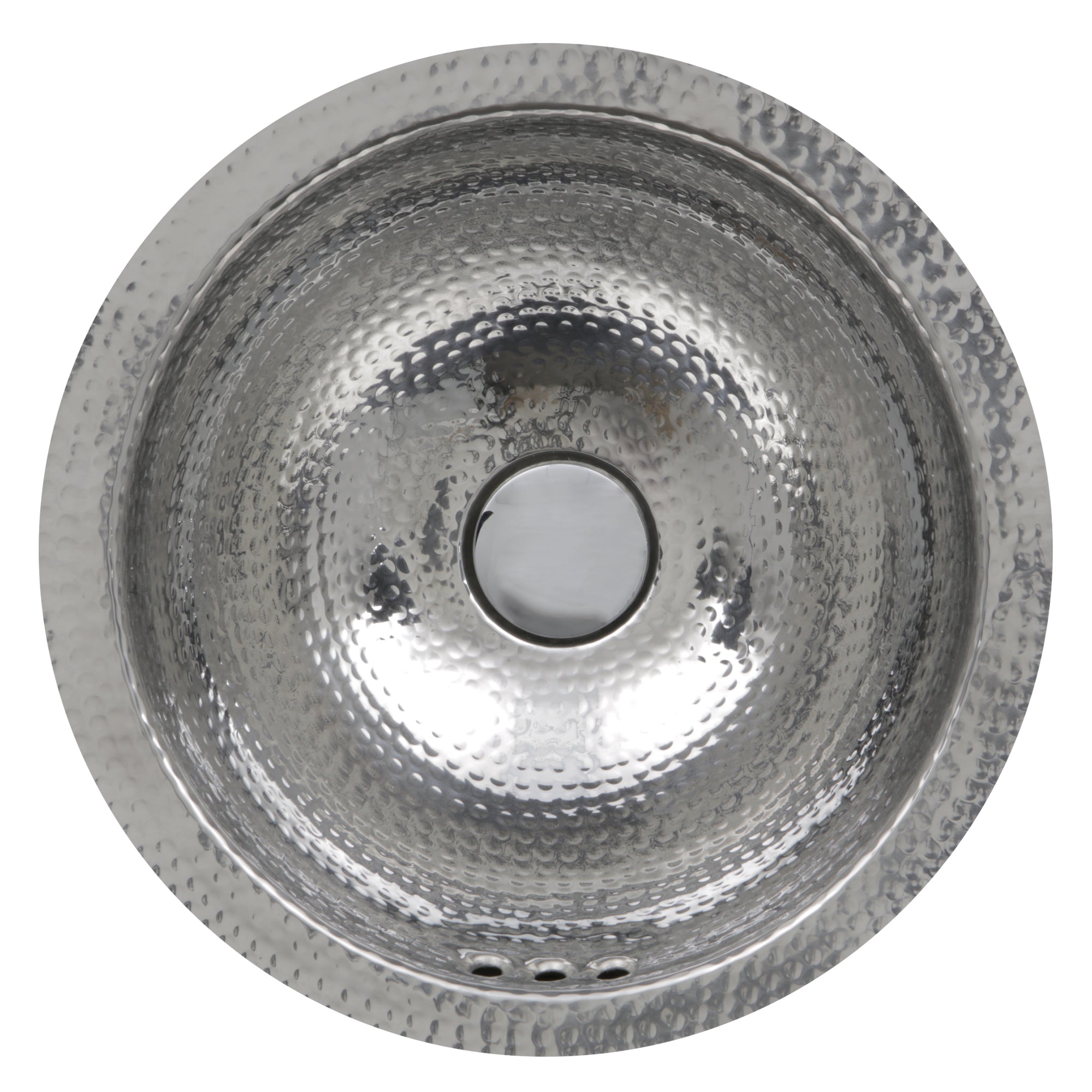 Nantucket Sinks ROS-OF ROS-OF 13 Inch Hand Hammered Stailess Steel Round Undermount Bathroom Sink With Overflow
