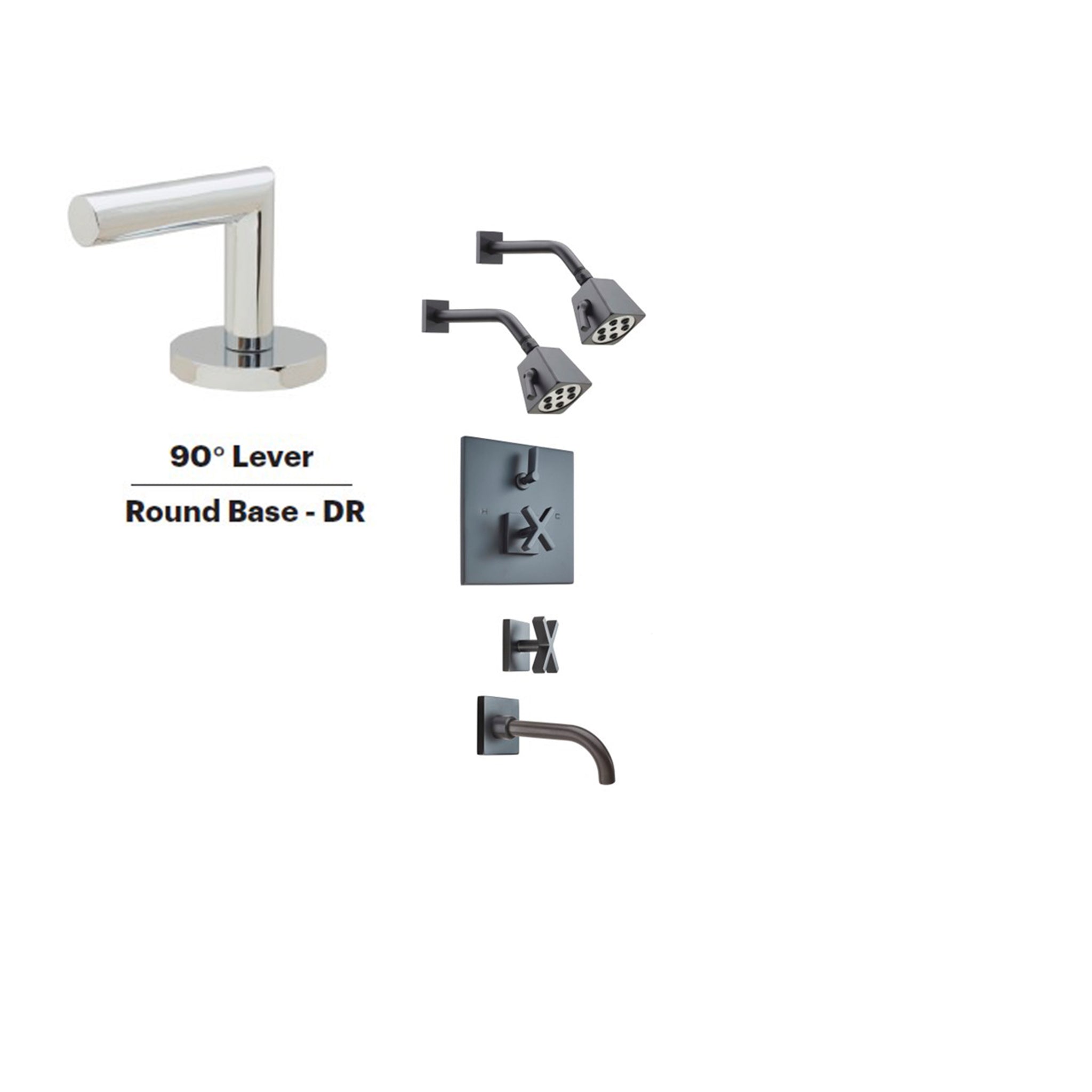 Model 50 Round E - Min Thermo With 90 Degree Lever, Round Base (2) Showerheads, Arms, Flanges & Tub Spout