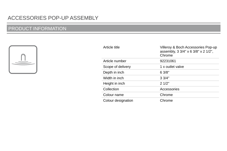Villeroy And Boch 92231061 Pop-Up assembly kit for ceramic drains - Chrome