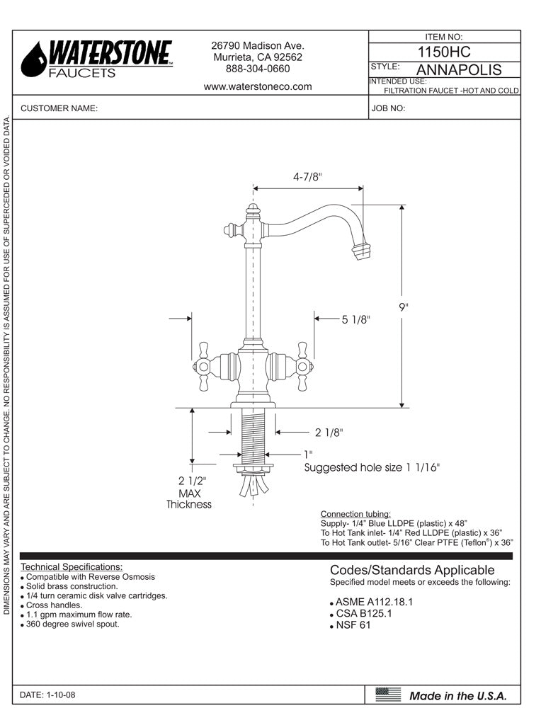 Waterstone 1150HC Annapolis Hot and Cold Filtration Faucet - Cross Handles