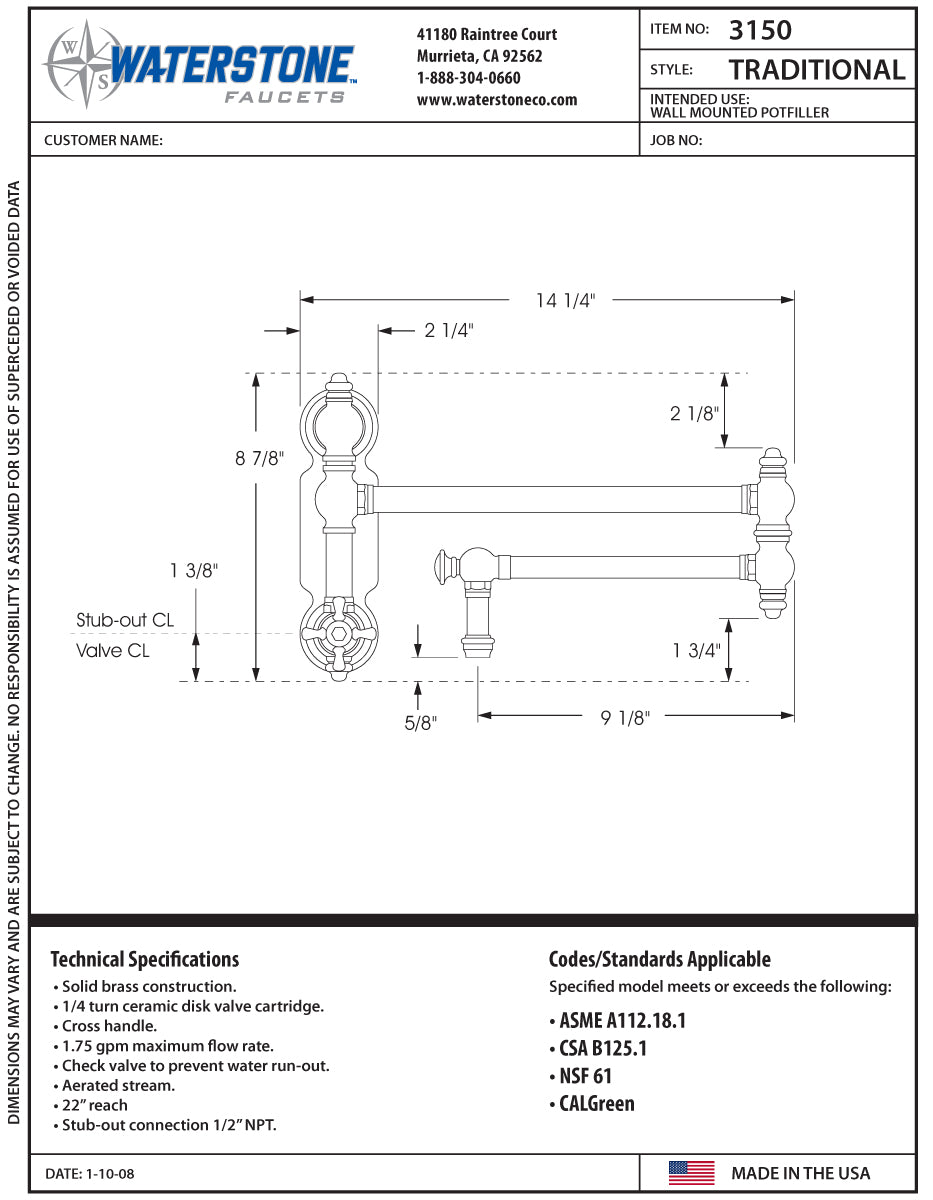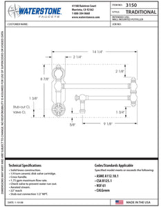 Waterstone 3150 Traditional Wall Mounted Potfiller - Cross Handle