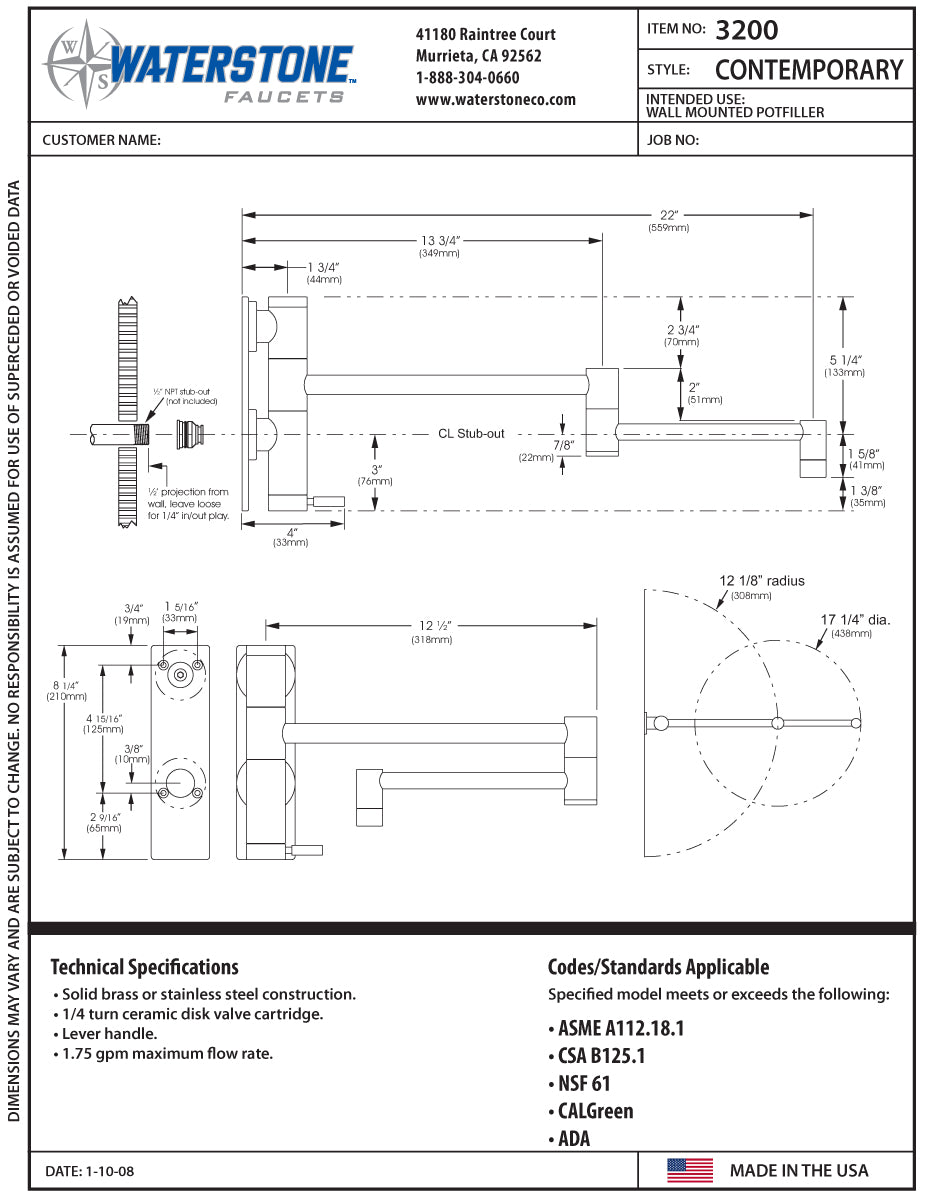 Waterstone 3200 Contemporary Wall Mounted Potfiller