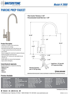 Waterstone 3900-1 Parche Prep Faucet w/Side Spray