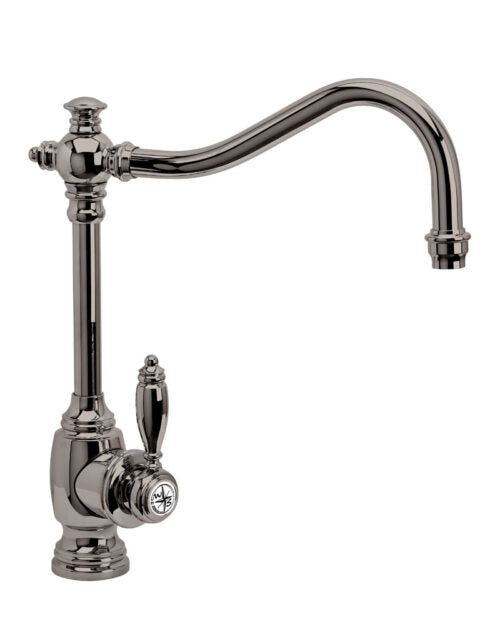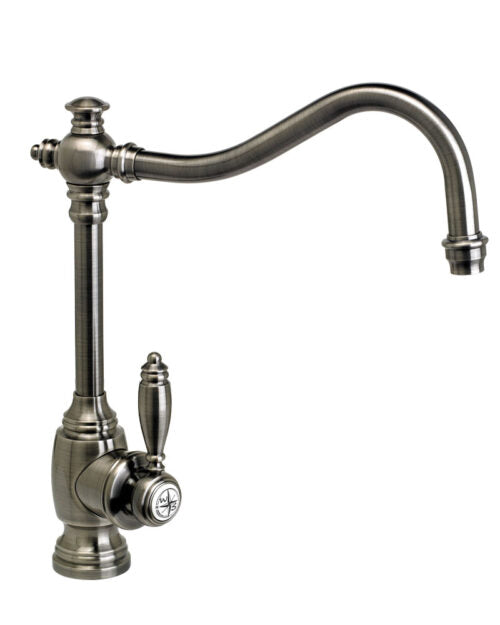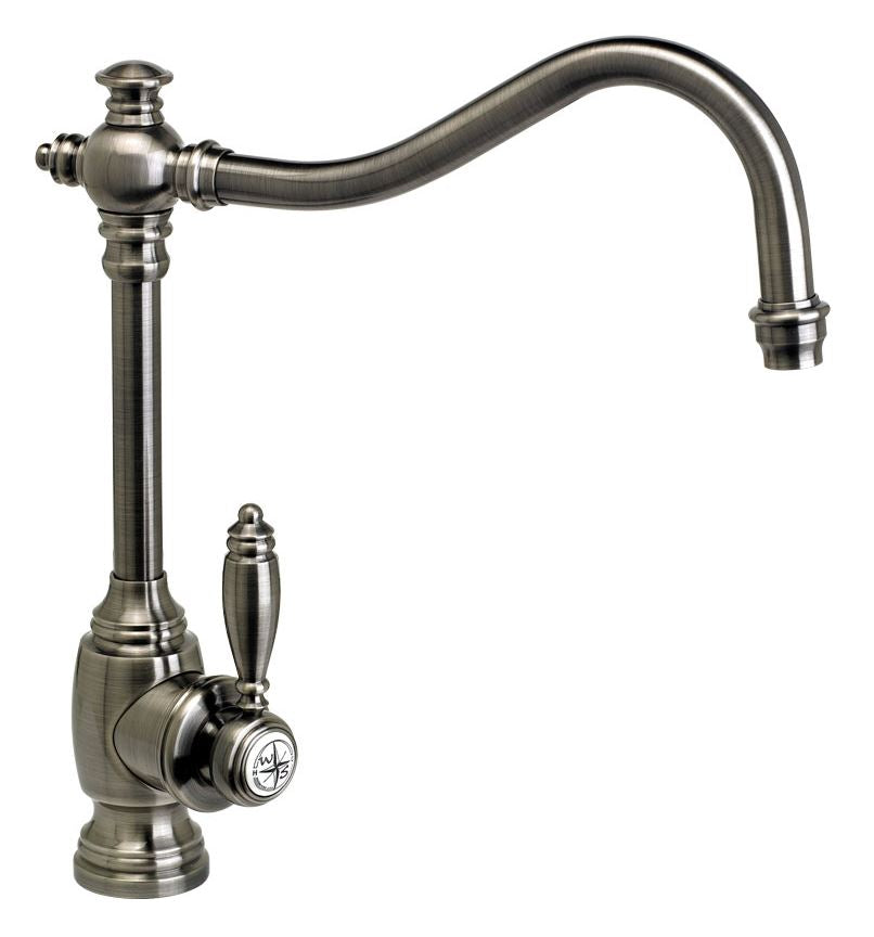When mounted on side, handle can adjust 45 degrees for backsplash clearance.