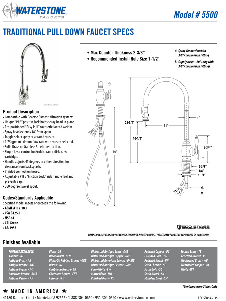 Waterstone 5500 Traditional Extended Reach Pulldown Pull Down Faucet