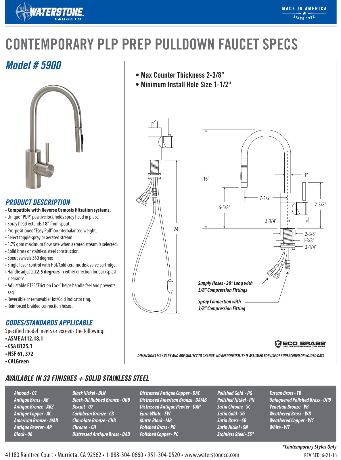 Waterstone 5900 Contemporary Prep Size Pulldown Faucet