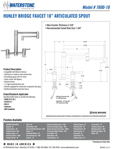 Waterstone 7600-18 Hunley Bridge Faucet - 18" Articulated Spout