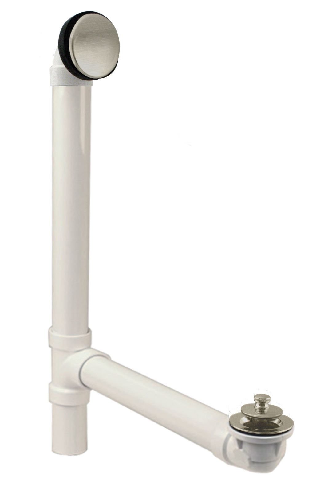 This exquisite PVC drain features a Hidden overflow, providing that clean, chic look. The tub drain uses a Lift and Turn style drain for positive closure. Lift and rotate to open the drain. Rotate and let the stopper drop to close it. Sch. 40 PVC fittings and pipes glue together for complete adjustability, making this ideal for extra deep or very long runs.