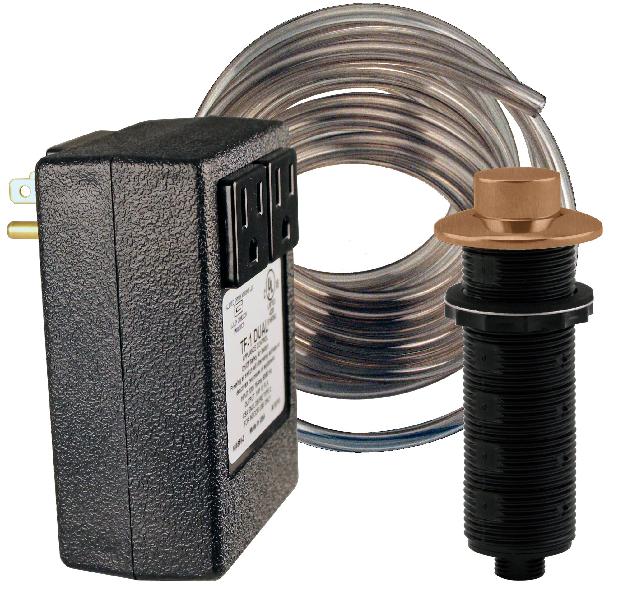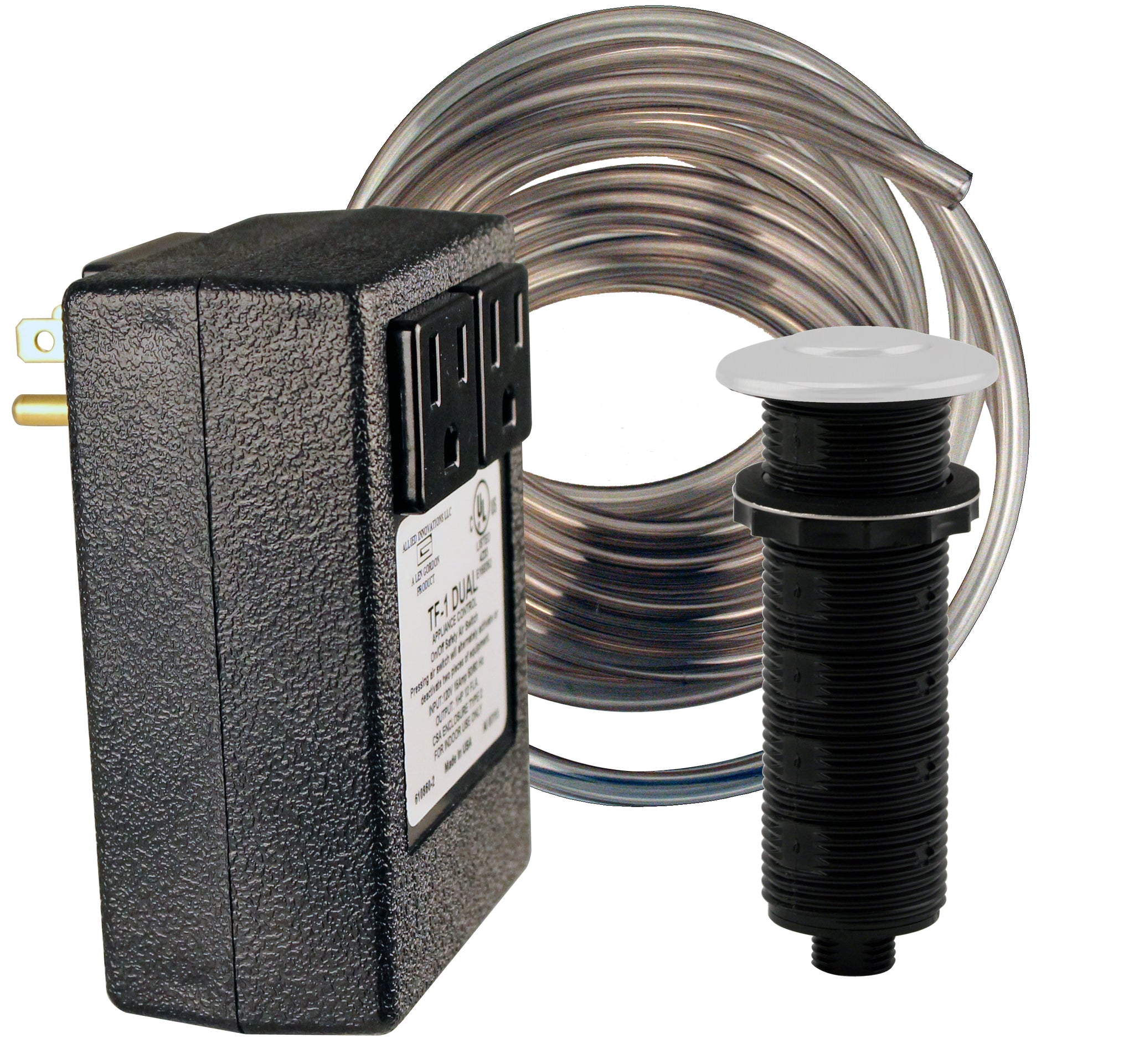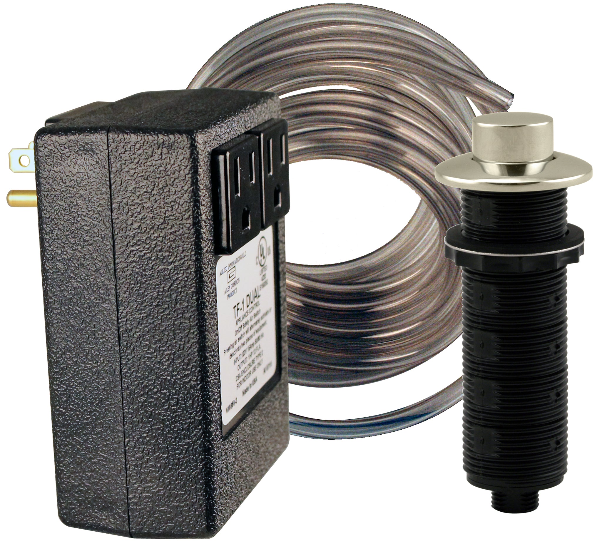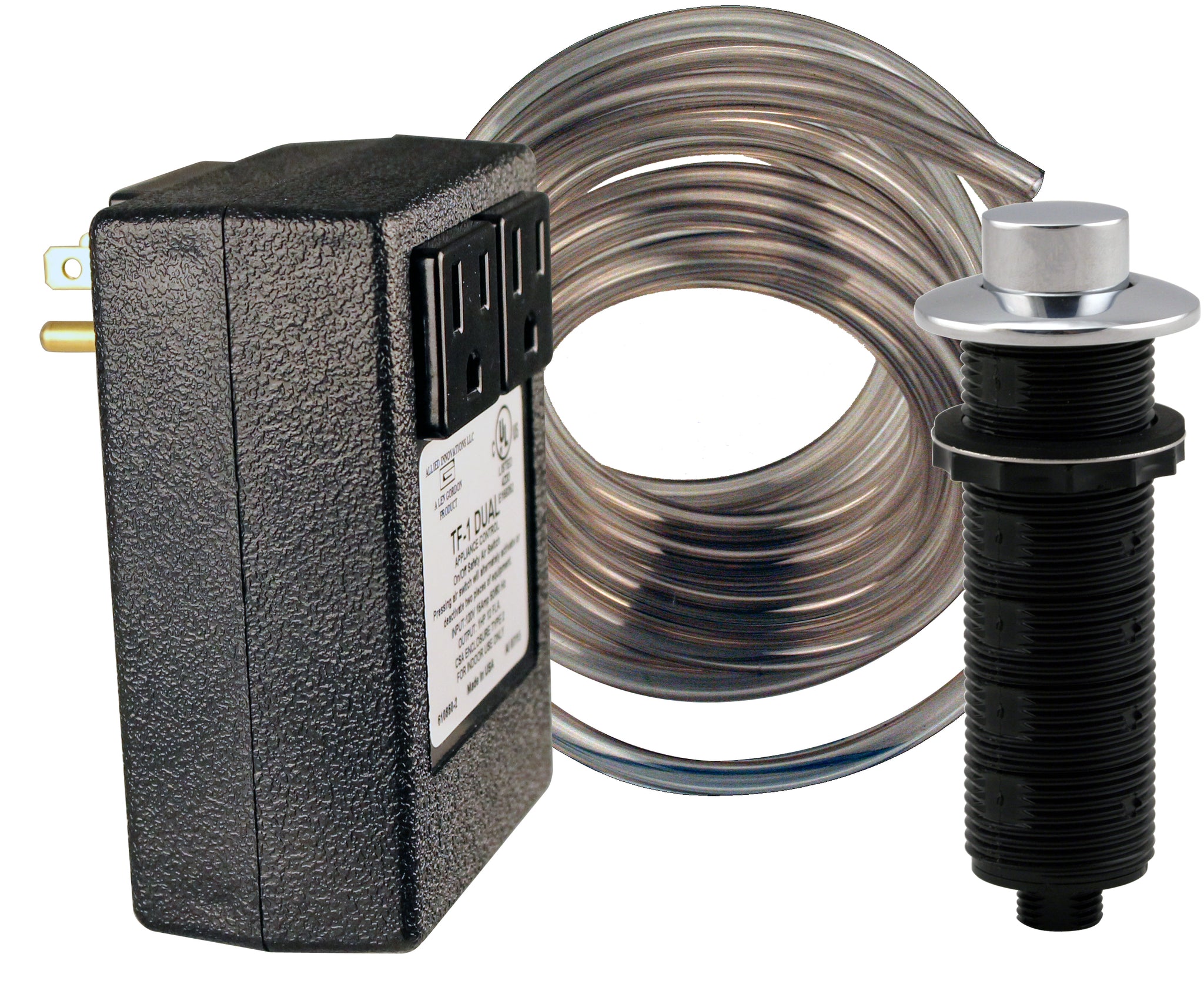 Install any brand disposal unit with this raised button from Westbrass. The raised button feature is easier on manicured nails, while protecting the user from electricity. Sturdily constructed, it securely mounts to the switching unit with an air hose. A pulse of air starts the disposal running while shutting off the second outlet. A second pulse makes the disposal stop, and reactivates the second outlet. System is perfectly designed for instant hot and disposal packages. Available in a variety of finishes, this item is sure to complement your existing decorative fixtures while increasing disposal safety.