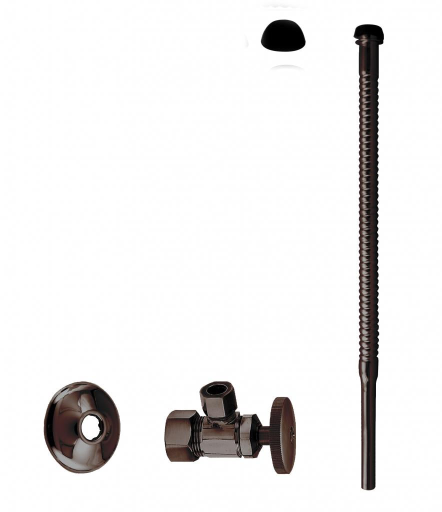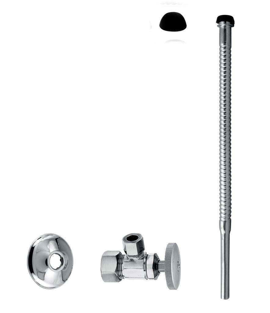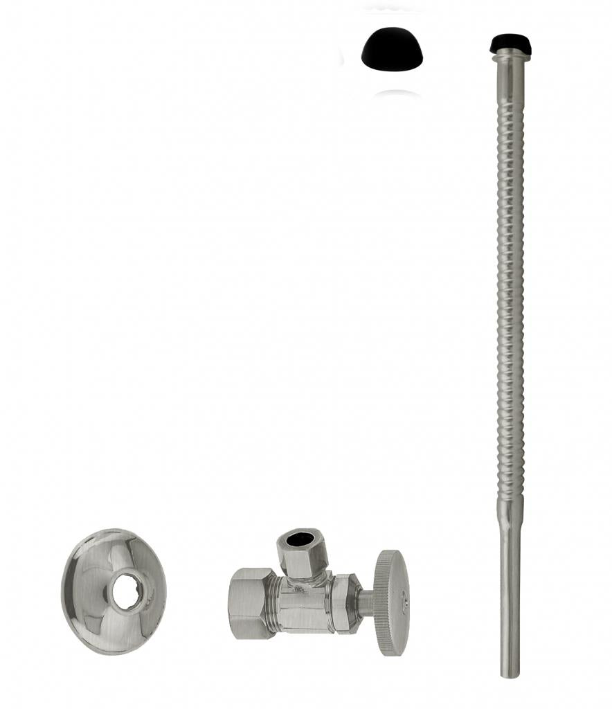 This Angle Stop Kit with Round Handle is the perfect compliment for sinks and toilets. It uses a 5/8 in. Compression Inlet (For 1/2 in. Copper pipe) with a 3/8 in. OD Compression outlet with nut and ferrule. The kit features a 12 in. corrugated riser with seals for sink or water closet. The valve uses traditional compression closure for positive seal. It is available in a variety of finishes.