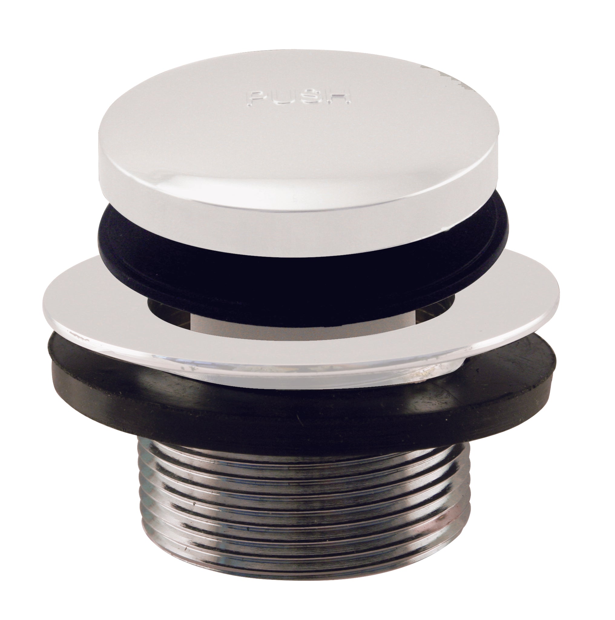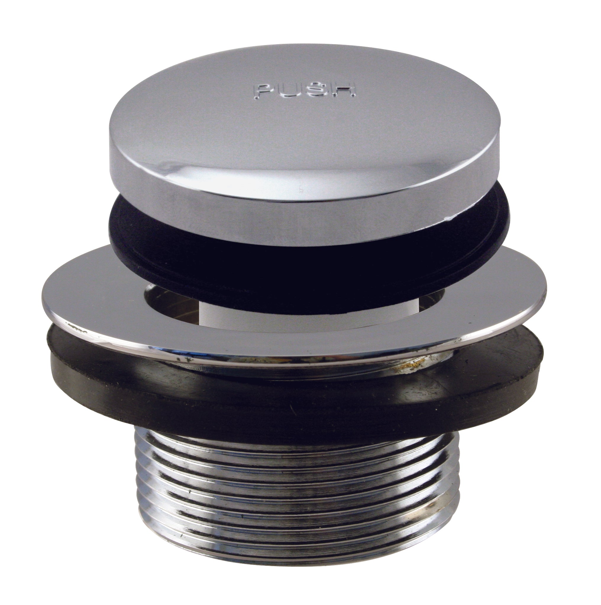 This ADA approved coarse thread bath drain and stopper, replaces existing bath drains and provides positive closure. Solid brass shoe with plastic and brass stopper stem. Easily opened and closed by pressing the stopper.