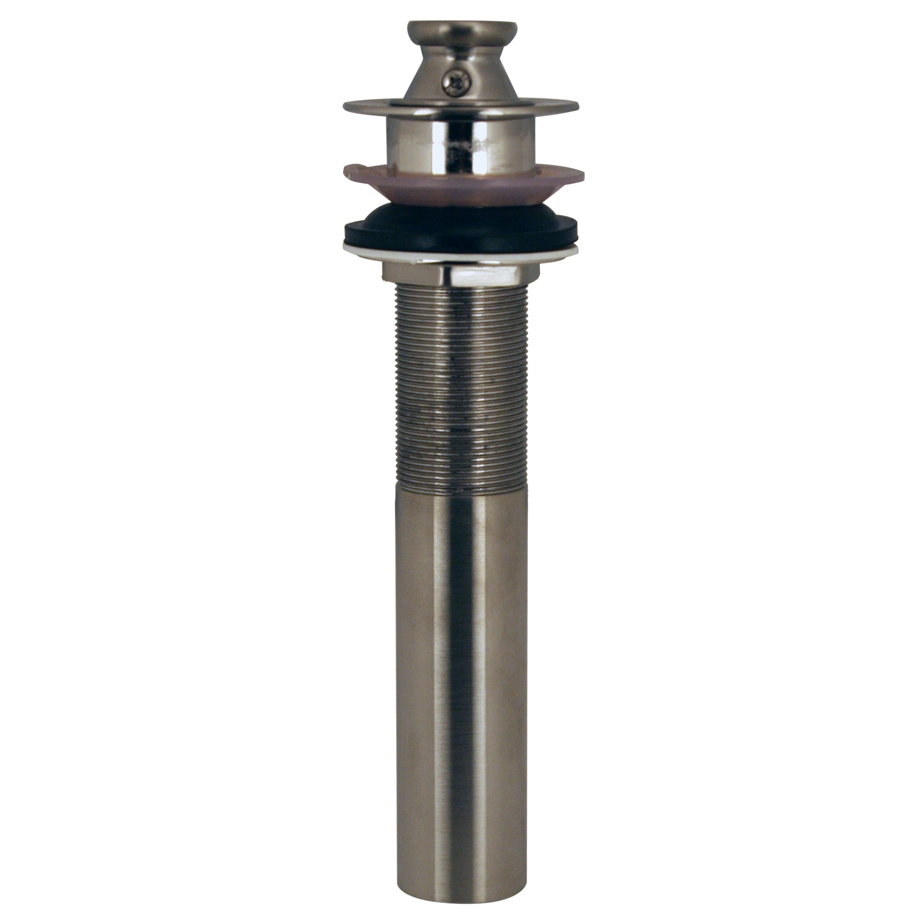This lift-and-turn style lavatory drain without overflow holes from Westbrass, features an easy-to-use stopper knob to allow or restrict the flow of water in the sink. The fully finished body allows installation in an open cabinet so you dont have to sacrifice one embellishment detail for another. The drain is designed for use with sinks without an overflow. Available in a variety of finishes, this item adds an extra splash of style to your bathroom dcor