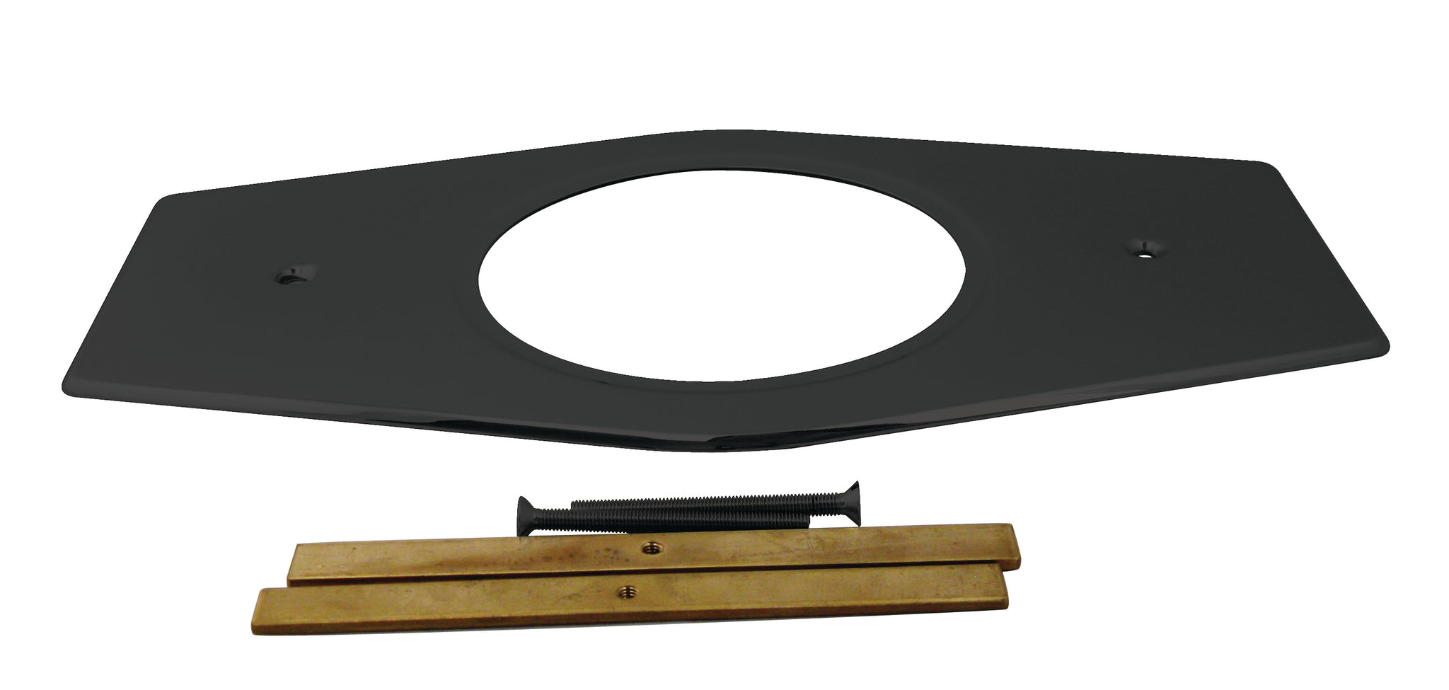 This remodel plate allows an installer to replace a 2 or 3 handle tub and shower valve with a single handle pressure balancing valve, without rebuilding the wet wall. Remodel plates are also often useful for covering incidental damage around an existing shower valve. 1 Hole Remodel Plate. Fits Moen and Delta Single Handle Valves. Includes Two Screws and Mounting Bars. 13 in. Overall Width. 7-1/2 in. at Tallest Point. 9-1/2 in. Screw to Screw. 5-1/2 in. Diameter Hole.