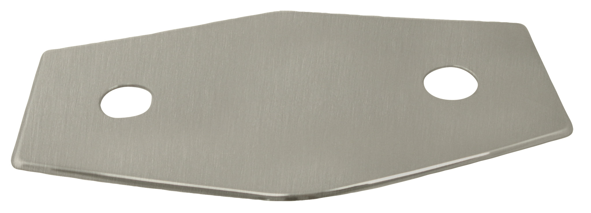 This remodel plate allows an installer to replace a 2 handle tub and/or shower valve, without rebuilding the wet wall. Remodel plates are useful for covering incidental damage around the existing valve cut out. 2 Hole Remodel Plate. Fits 2 Valve Unit. 13 in. overall width. 7-1/2 in. at tallest point. 1-1/2 in. diameter holes. 8 in. center to center of holes.