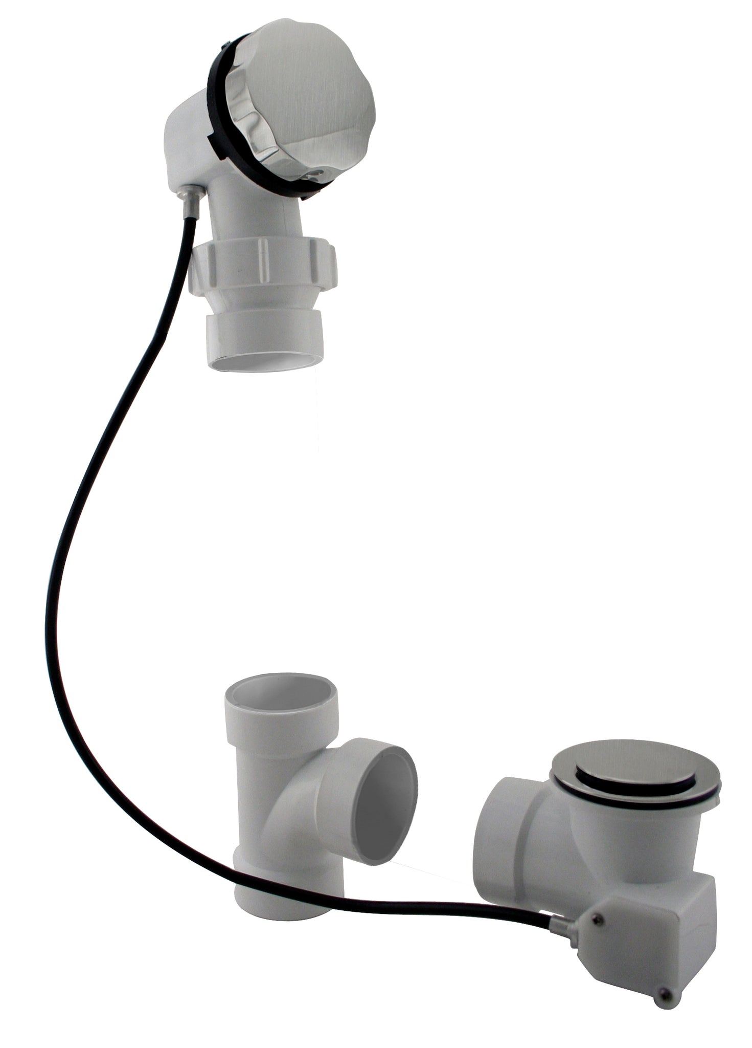 Westbrass D50A27BJ Schedule 40 PVC Cable drive bath waste with 27-Inch Cable and ball joint top elbow for tub adjustability. 1-1/2-Inch Schedule 40 PVC Cable Drive Bath Waste uses all Glue Type fittings - Tubes Not Included. Rotate overflow handle to close drain. Turn back to open.