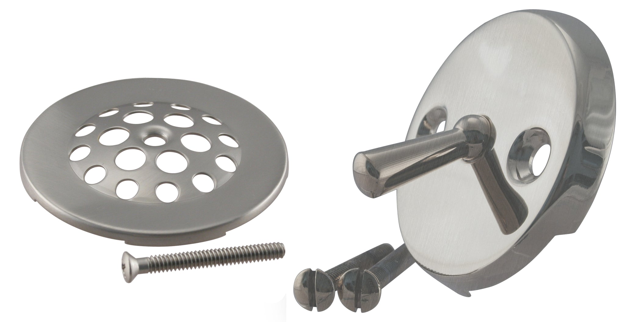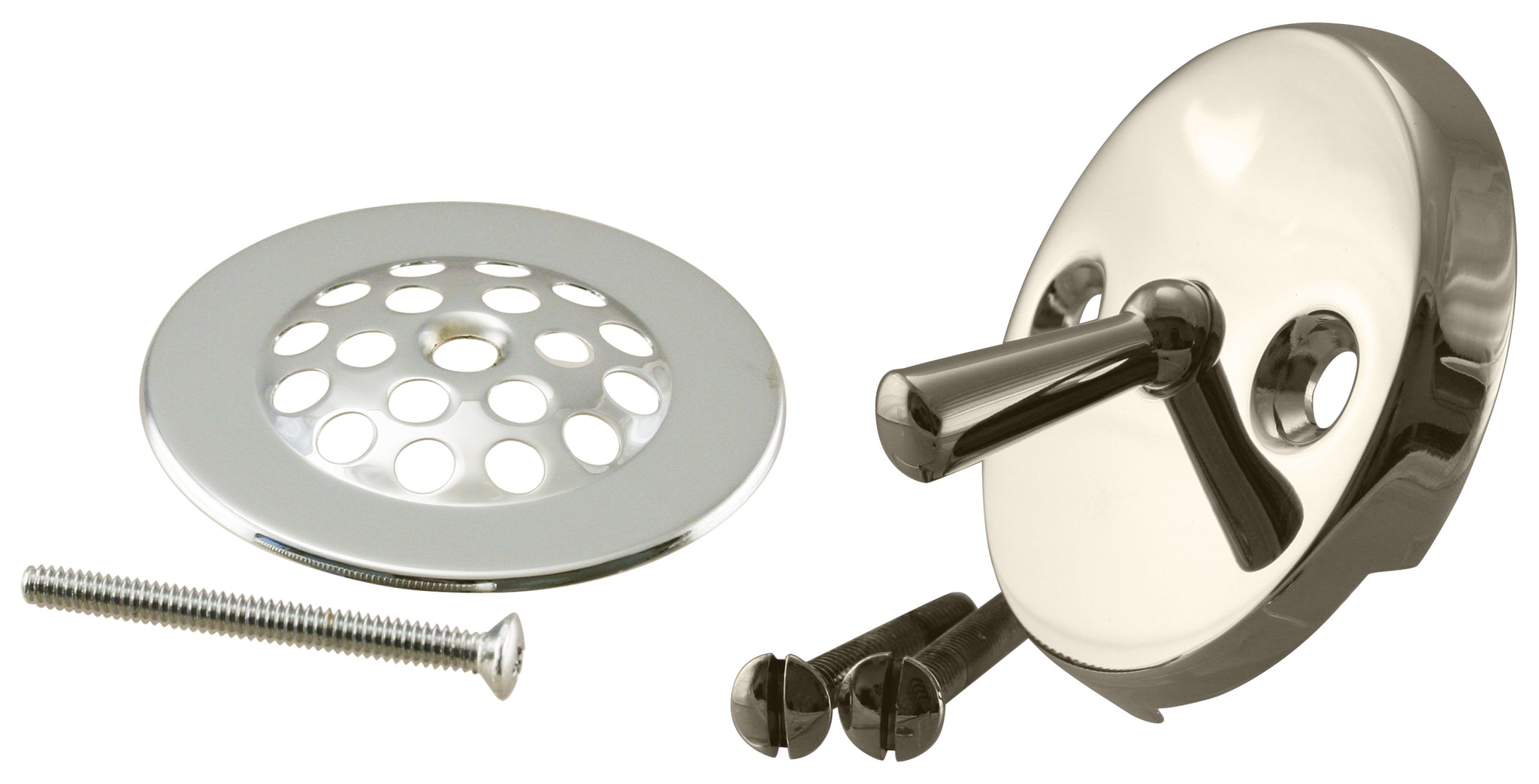 This Westbrass trim kit fits almost any trip lever tub. It includes a beehive grid tub drain plug with #10 - 24 x 1-5/8'' screw and a 2-hole trip lever faceplate with 2 ea. 1/4'' - 20 screws. Available in a variety of finishes, this item is sure to complement your existing fixtures.